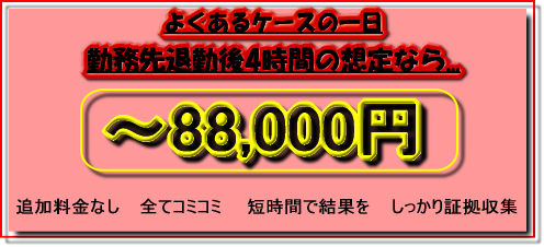 当事務所でよくある「勤務先退勤後4時間程度の行動確認」でご依頼いただいた場合は~88,000円となります。